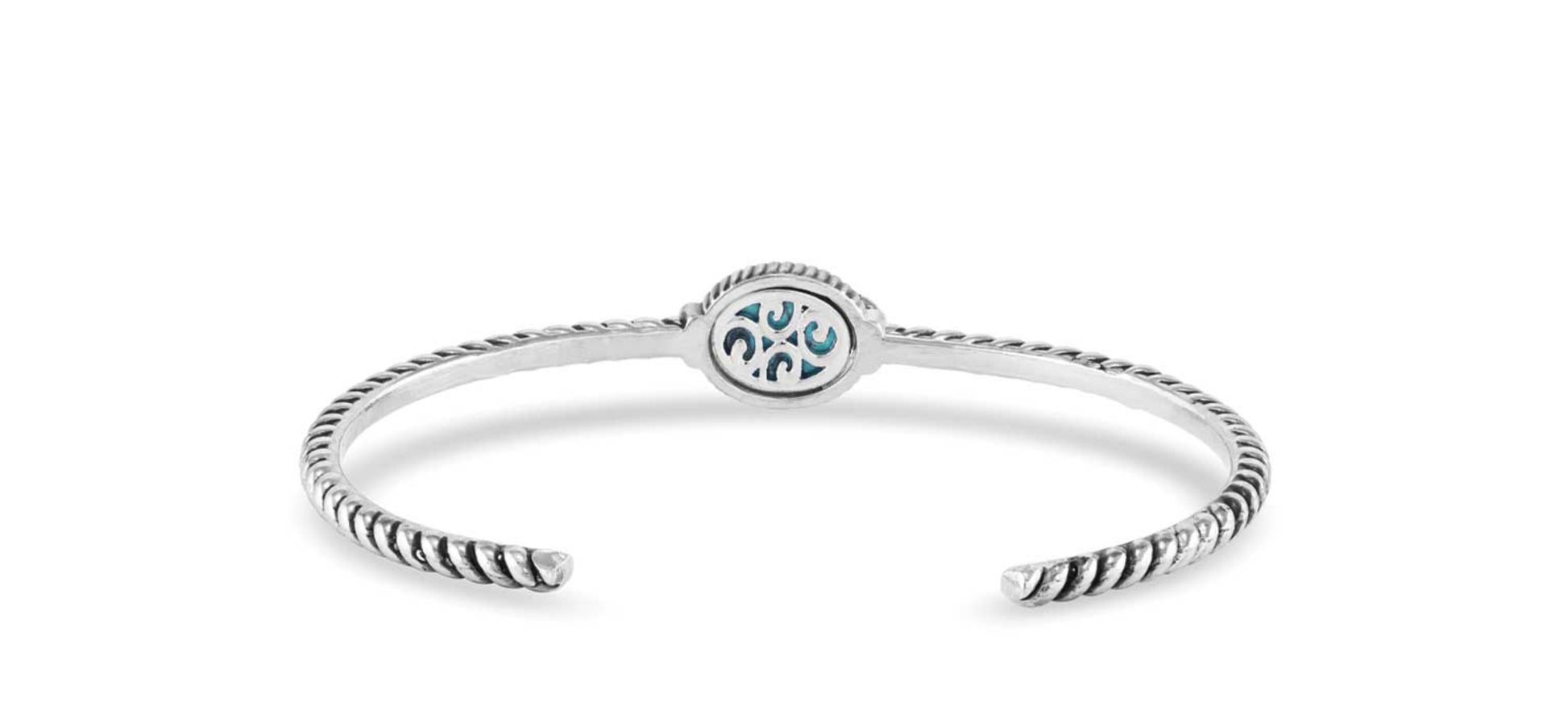 Carry a reminder of what is important to you with the World's Feather Turquoise Bracelet. A simple antiqued silver tone rope creates the cuff. At the top of the bracelet is an oval turquoise stone. Laying overtop of the turquoise stone is an antiqued feather that looks like it is floating in the sky