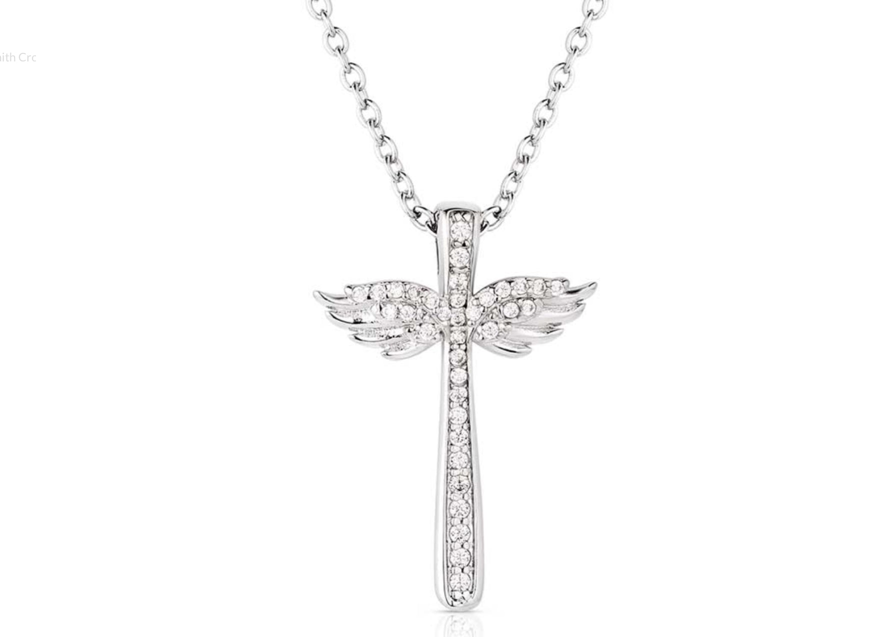 Let your faith take flight with the Wings of Faith Cross Necklace. The silver tone necklace is in the shape of a cross with wings on either side. Clear cubic zirconia crystals cover the pendant adding sparkle and shine.