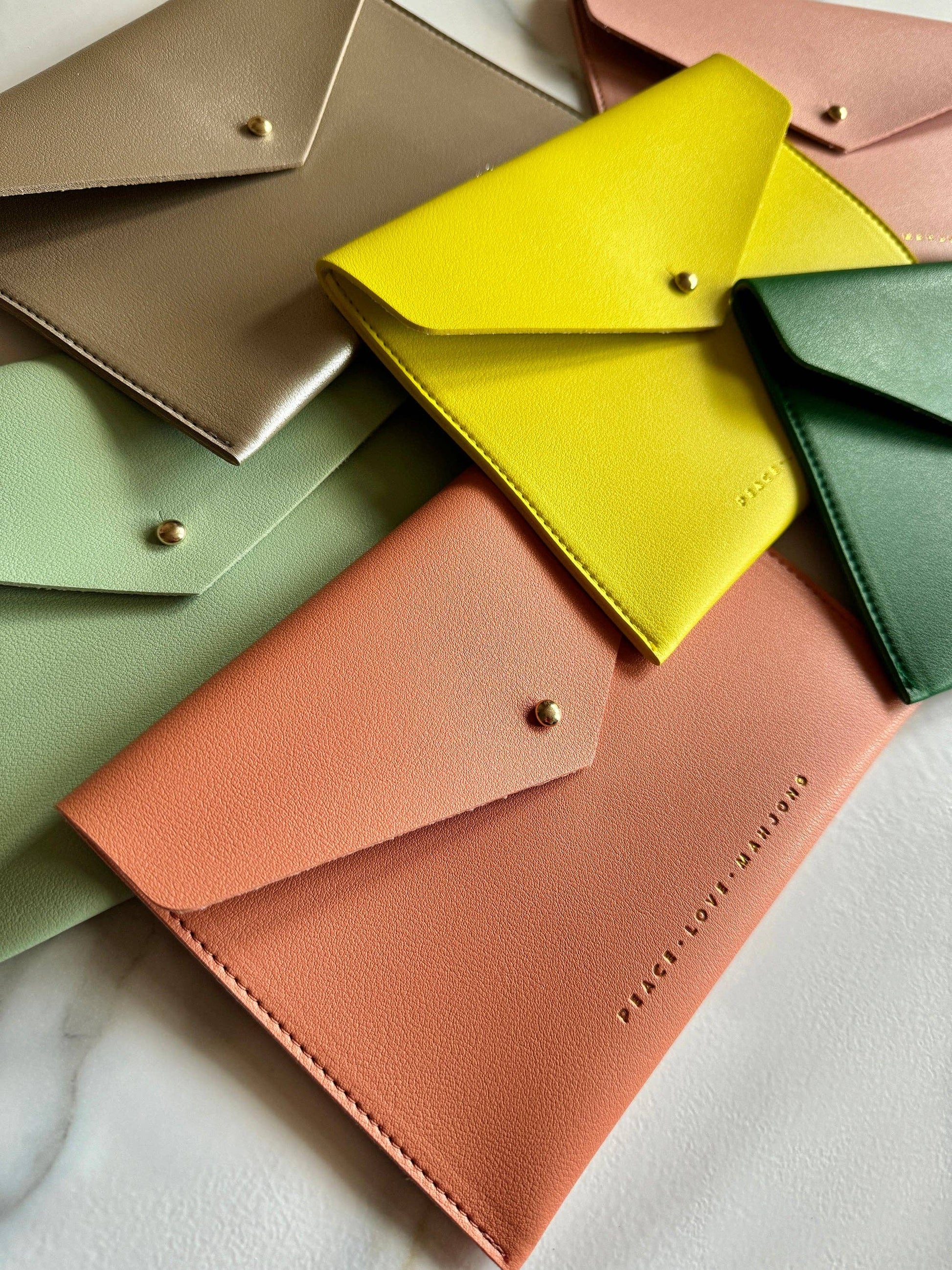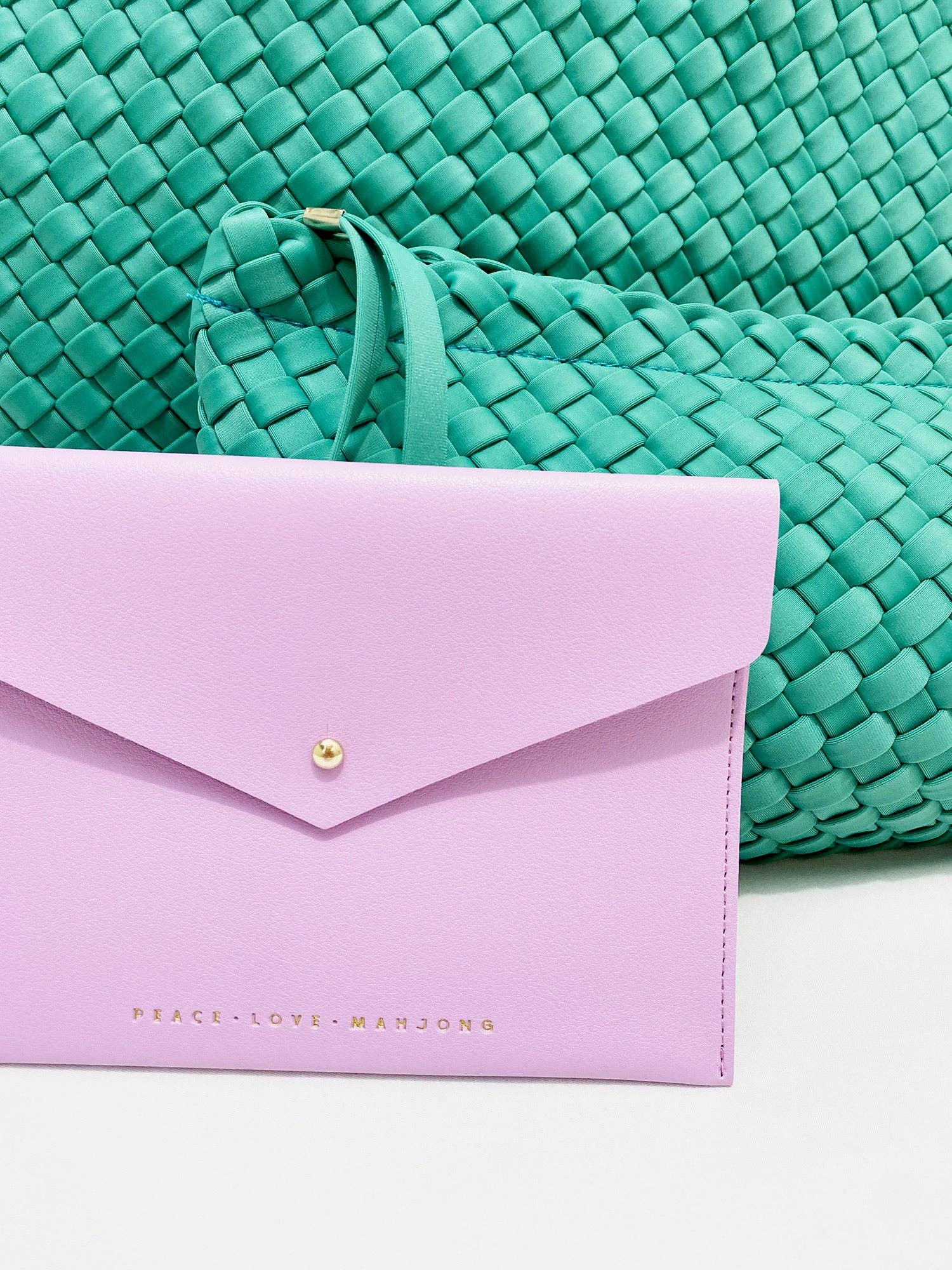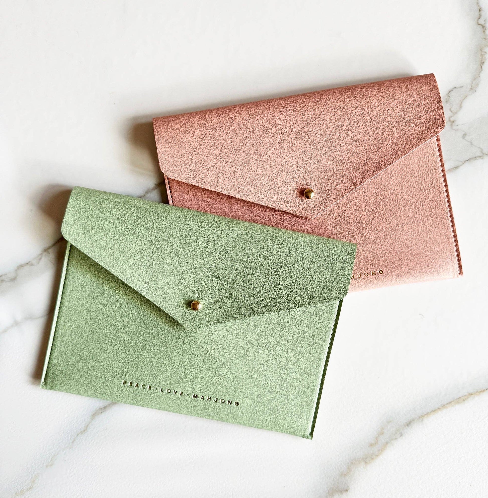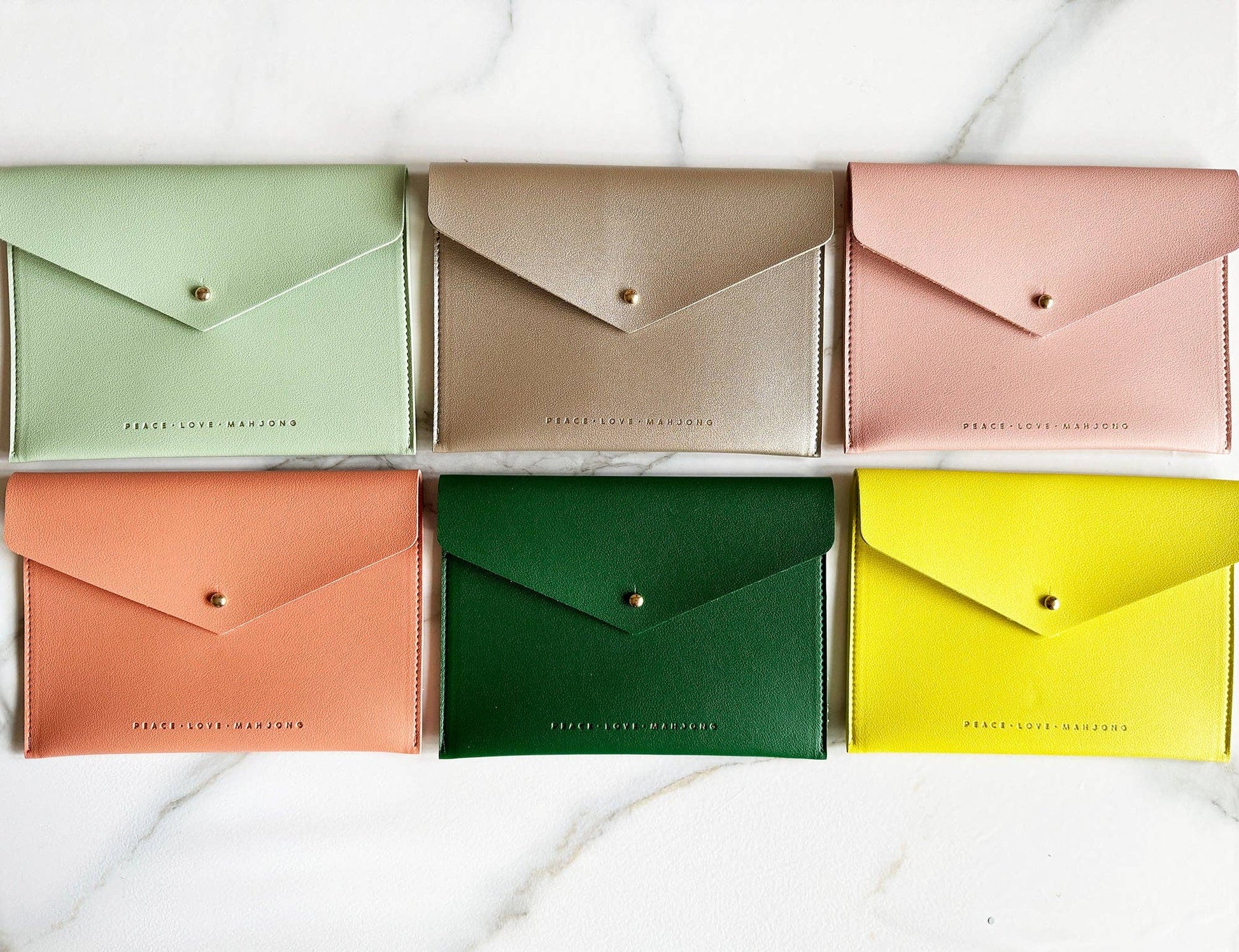 Card Clutches are available... and we have lots of new colors! Beautifully designed to keep your Mahjong cards protected when you aren't playing. They are chic and stylish, and make the perfect gift. Holds 4+ large or small format National Mahjong League Cards. 2 Sizes: Original: 7" x 5" Large: 8" x 5.75" (in addition to holding mahjong cards, the large size fits PLM shufflers & new PLM rectangular tile guides)