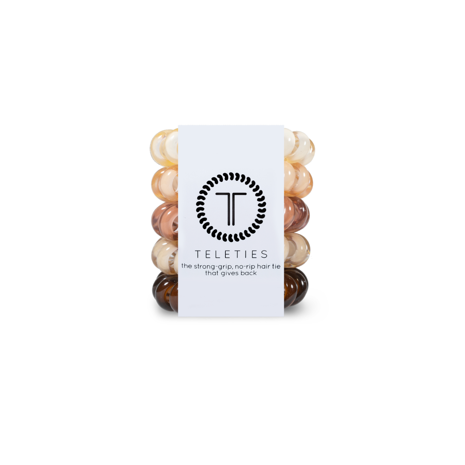Small yet mighty, the tinyTELE boasts the same no-rip, strong-grip features you love and the fashionable styling you expect from TELETIES, now in smaller, tinier size. Perfect for little kids' hair, top knots, and the end of braids.